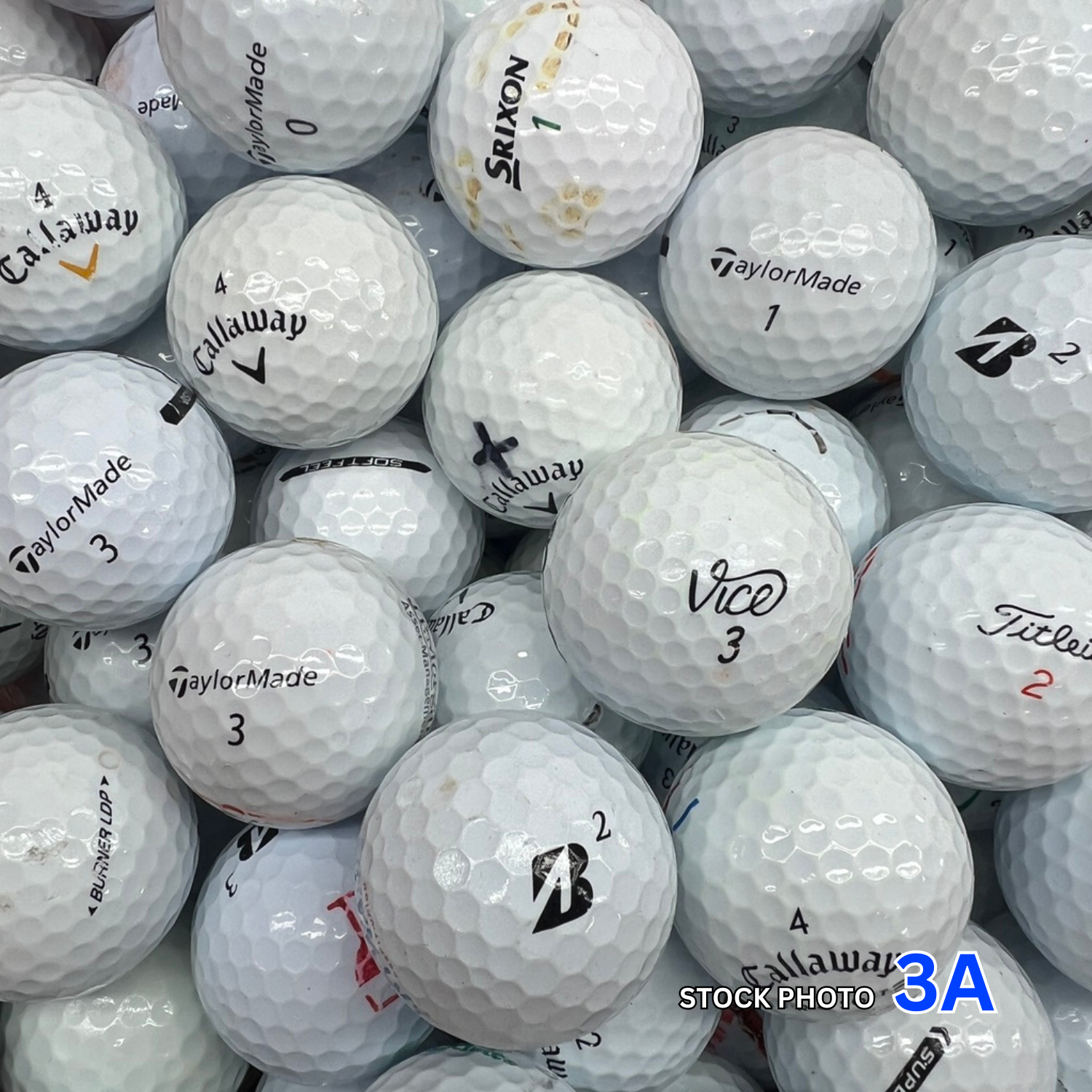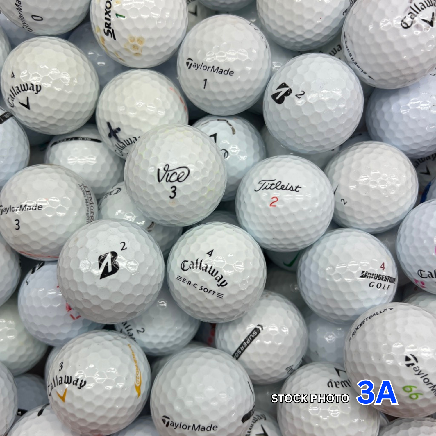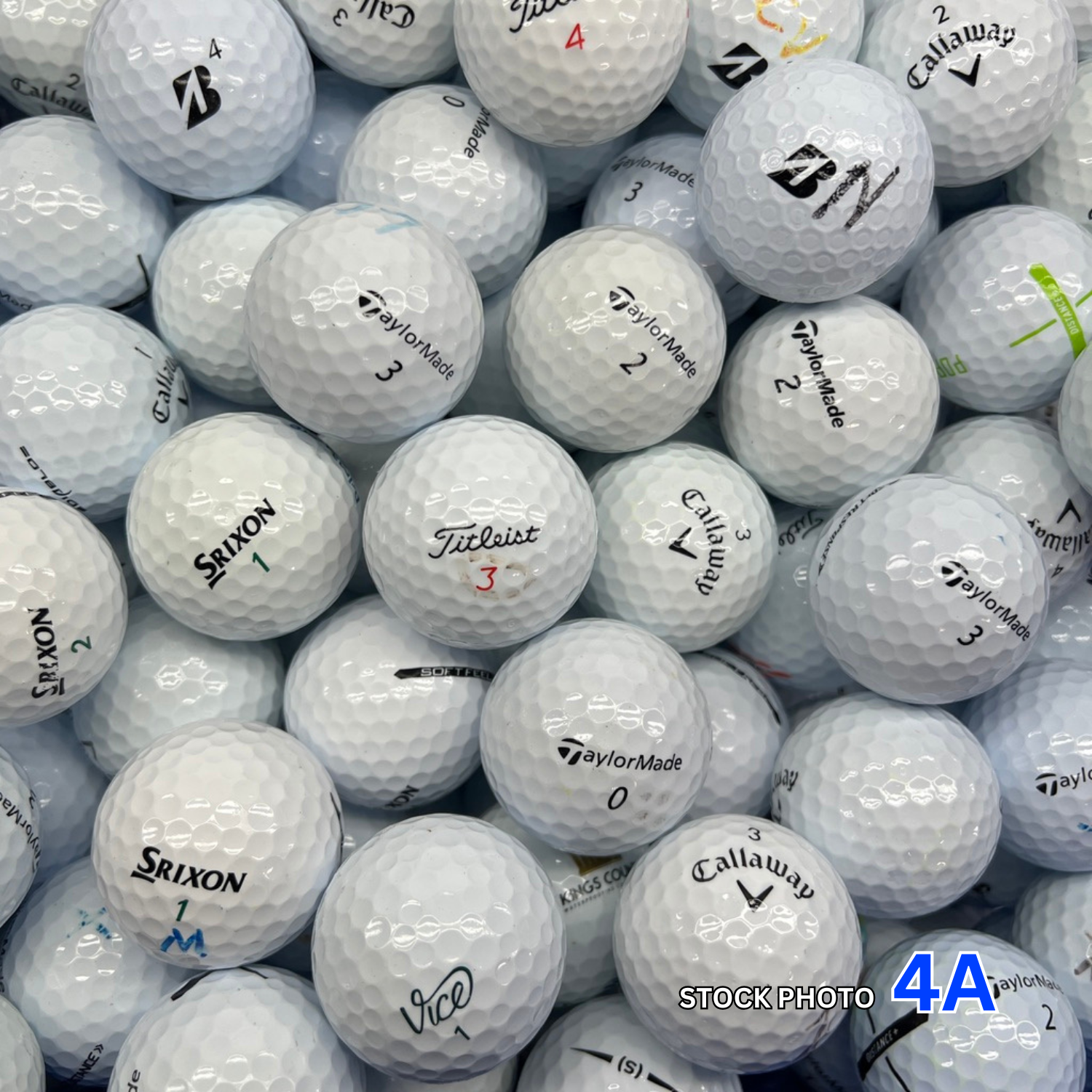 This grade is our bargain C-Grade golf balls that did not make it into our 4A category. These balls will have player marks (sharpie), scuffs, discoloration, and blemishes — these balls can have a slight texture feel due to certain marks, but not all will be like that. These balls do not look new but can still be used for play. Practice, X-Out, corporate/team logos are in this grade.
