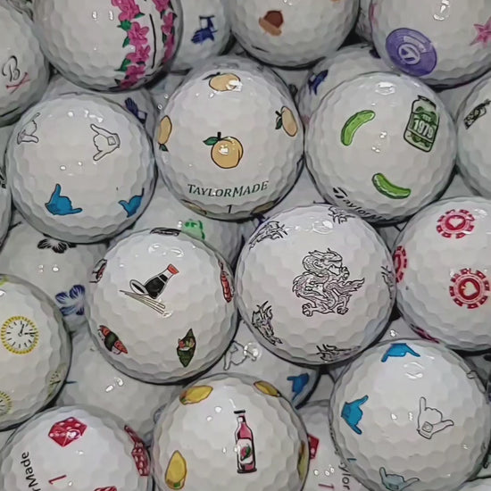 The TaylorMade Pix Logo Mixed Lot features a fun and functional assortment of TP5 and TP5x golf balls with bold Pix alignment graphics and exclusive printed logos. These balls combine tour-level performance with eye-catching visual cues for better alignment, focus, and tracking, without the common Pix triangle or themed designs.